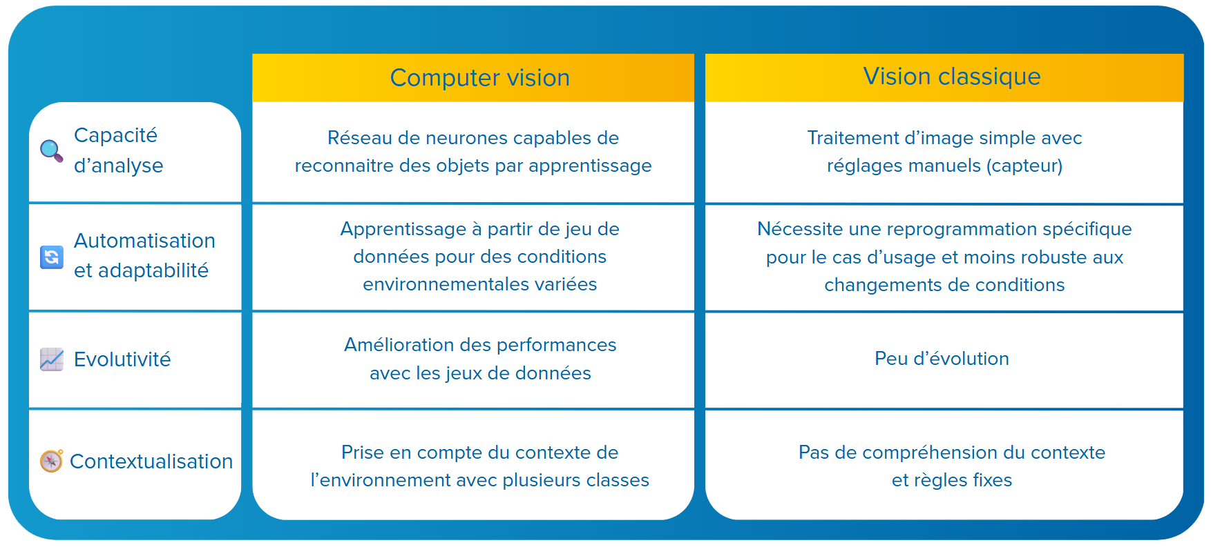 Avantages du Computer Vision par rapport aux solutions de vision classique